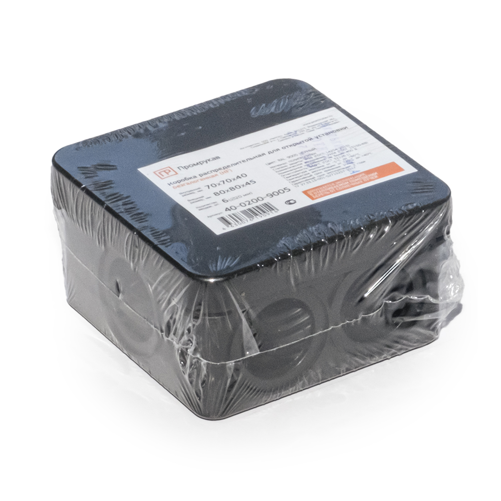 40-0200-9005 коробка распределительная 40-0200-9005 для о/п безгалогенная (HF) черная 70х70х40 (132шт/кор) Промрукав; кол-во вводов 6; УХЛ4; RAL 9005; -25..40°C; IР55; 0,06751 кг.