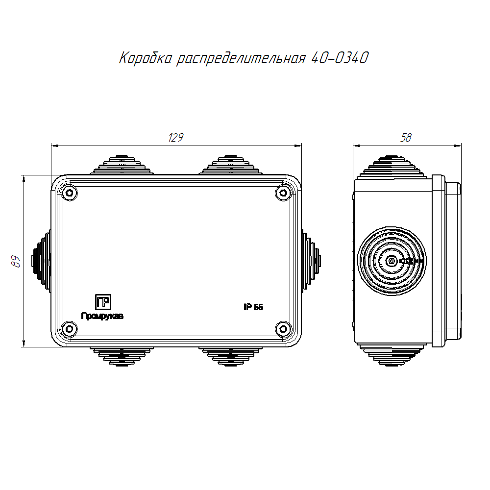 40-0340 коробка распределительная 40-0340 для о/п безгалогенная (HF) 120х80х50 (64шт/кор) Промрукав; кол-во вводов 6; УХЛ4; RAL 7035; -25..40°C; IР55; 0,13575 кг.