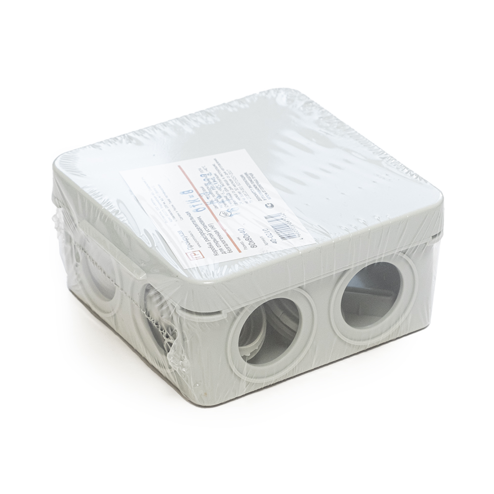 40-0210 коробка распределительная 40-0210 для о/п безгалогенная (HF) 80х80х40 (105шт/кор) Промрукав; кол-во вводов 7; RAL 7035; -25..40°C; IР55; 0,08063 кг.