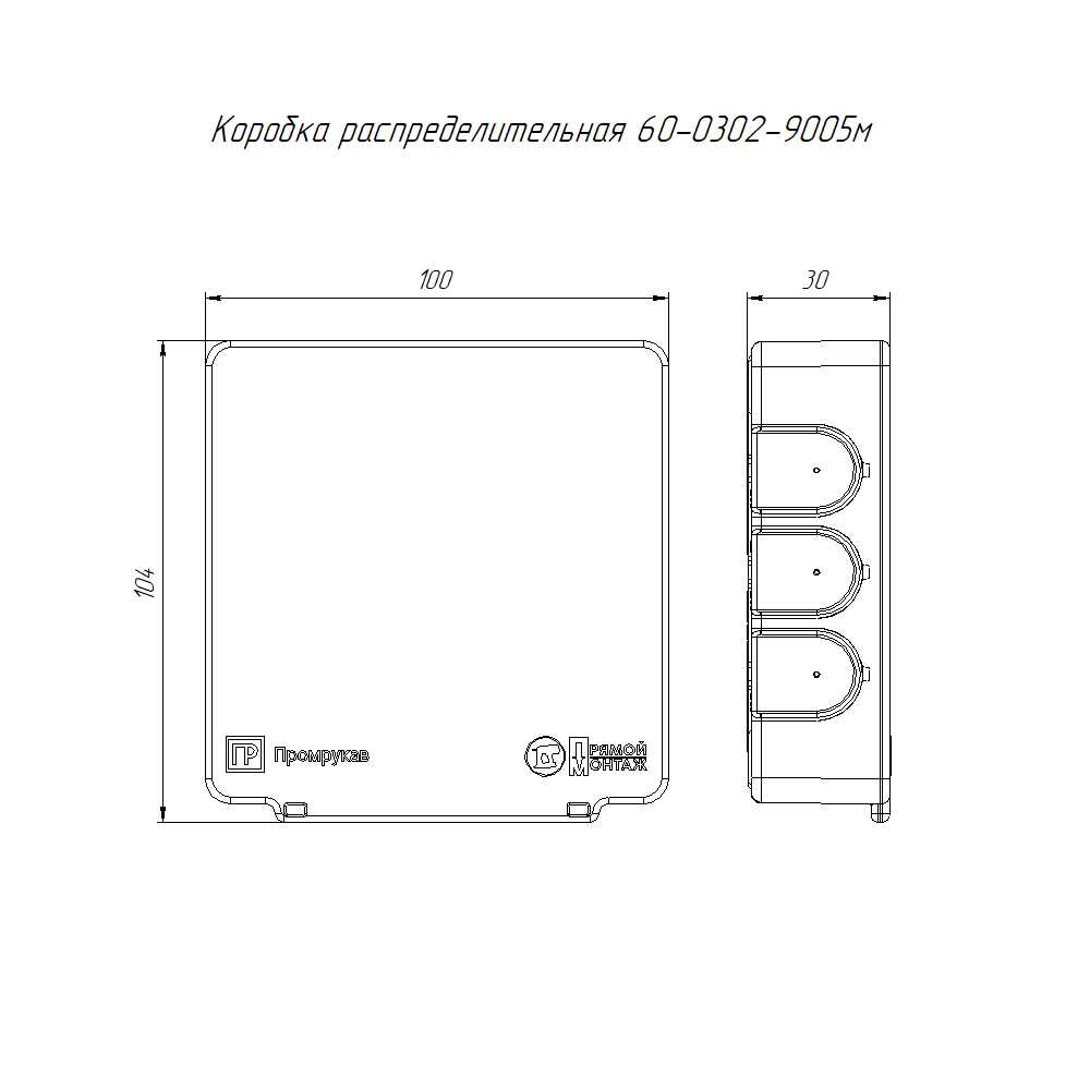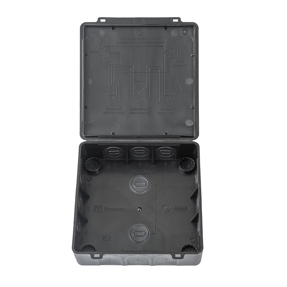 60-0302-9005м коробка распределительная 60-0302-9005м для прямого монтажа двухкомпонентная безгалогенная (HF) черная 100х100х30 (8 шт/уп) Промрукав; кол-во вводов 14; RAL 9005; -45..60°C; IР55; 0,06365 кг.