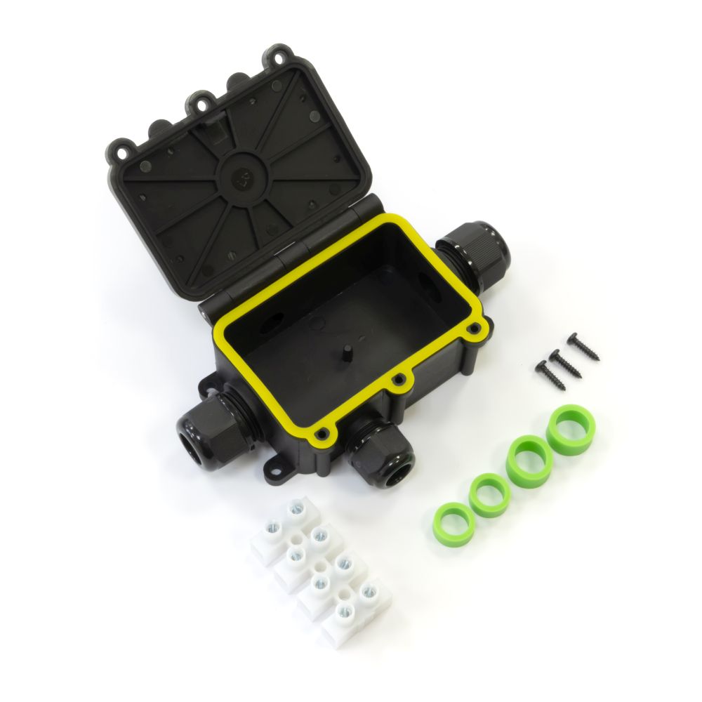 Распределительные коробки IP68 предназначены для надежного соединения и ответвления кабельных линий в условиях повышенной влажности и агрессивных внешних воздействий. Степень защиты IP68 гарантирует полную герметичность от попадания мелких частиц внутрь корпуса и проникновения влаги, а так же позволяет эксплуатацию под водой на глубине более 1 метра длительностью более 30 мин. Изделия изготовлены из высокопрочного и ударостойкого полиамида, материал является безгалогенным, не поддерживает горение, устойчив к ультрафиолетовым лучам, химическим веществам и к значительным перепадам температур от -40 до 105 °C. Откидная крышка обеспечивает удобство монтажа, а силиконовые эластичные уплотнительные кольца позволяют вводить кабель различного диаметра. Внутренний размер коробки: 72х46 мм.В комплектацию входит:- Кабельные вводы: М20 - 2 шт, М16 - 2 шт;- Силиконовые уплотнительные кольца – M20: 5-9 мм, 9-12 мм – по 2 шт; М16: 3,5-7 мм, 7-10 мм – по 2 шт;- Клеммная колодка – 1 шт;- Саморезы – 3 шт.