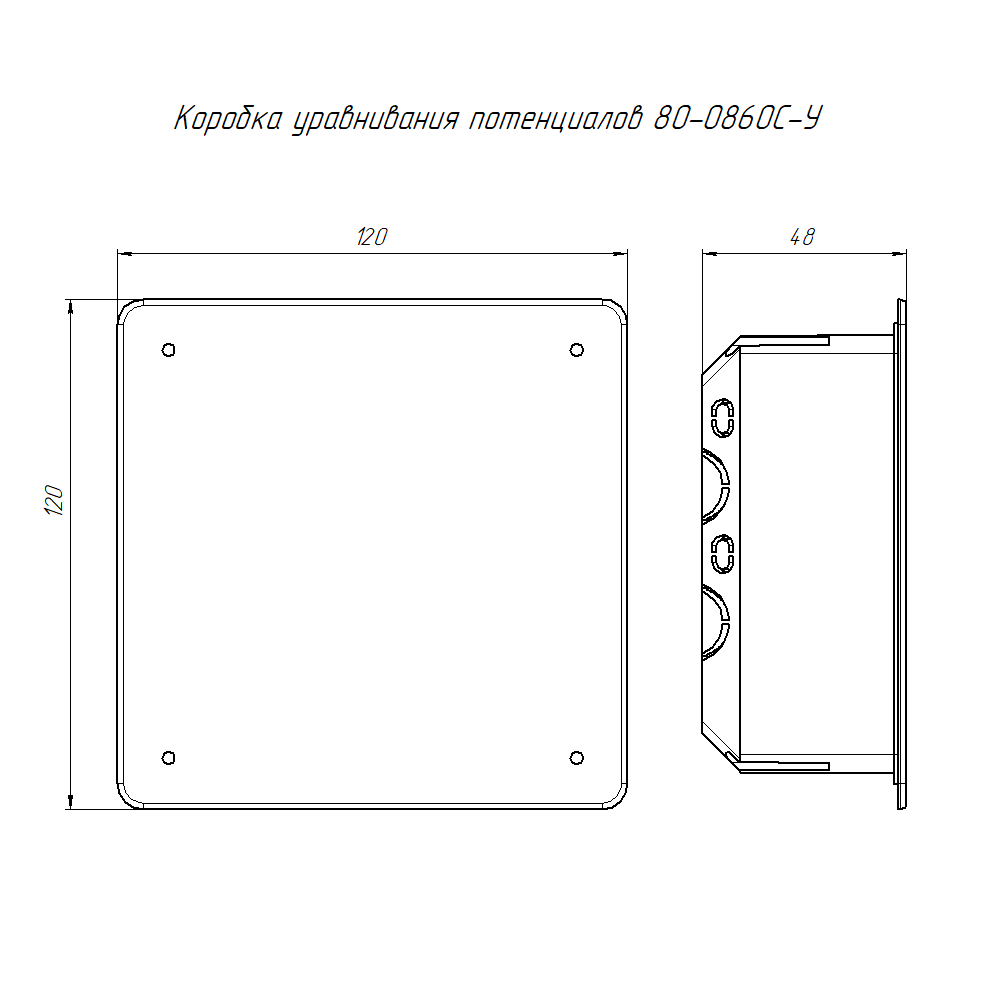 80-0860С-У коробка уравнивания потенциалов (КУП) 80-0860С-У для скрытой установки в сплошные стены 103х103х47 (72шт/кор) Промрукав; 20 вводов; зажимы шины заземления 8; 103х103х47 мм; IР20; RAL 9005; -25..40°C; 0,09341кг.