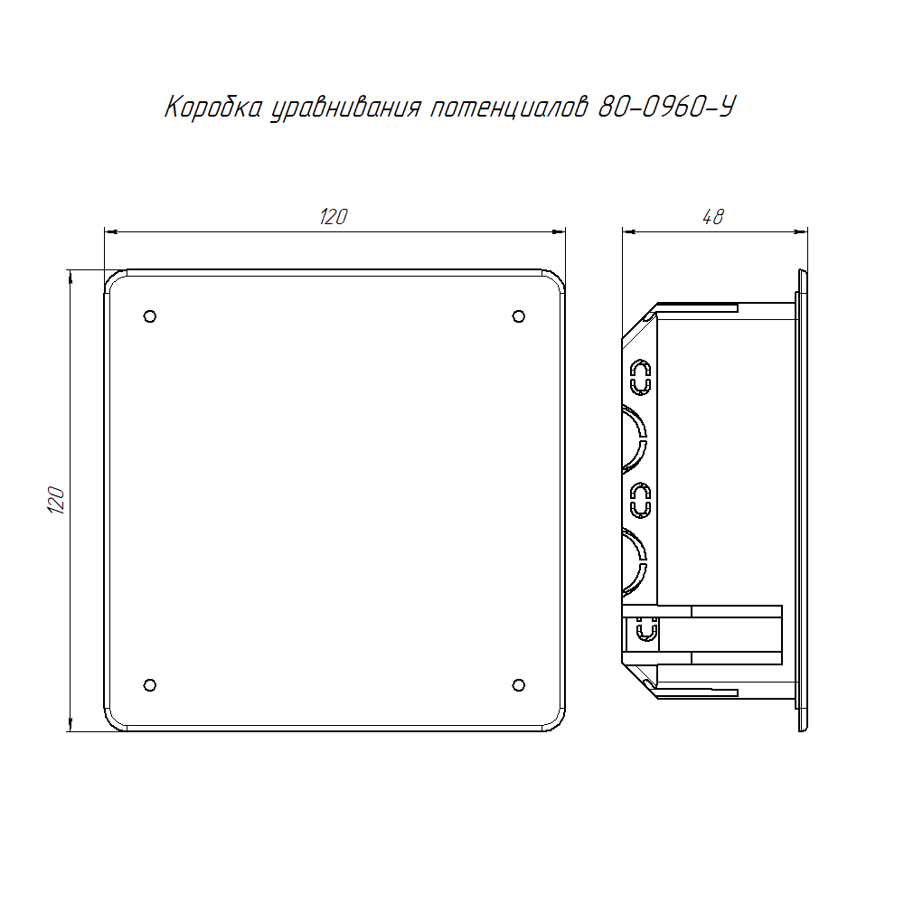 80-0960-У коробка уравнивания потенциалов (КУП) 80-0960-У для скрытой установки в полые стены 103х103х47 (72шт/кор) Промрукав; 20 вводов; зажимы шины заземления 8; 103х103х47 мм; IР20; RAL 5005; -25..40°C; 0,10231кг.