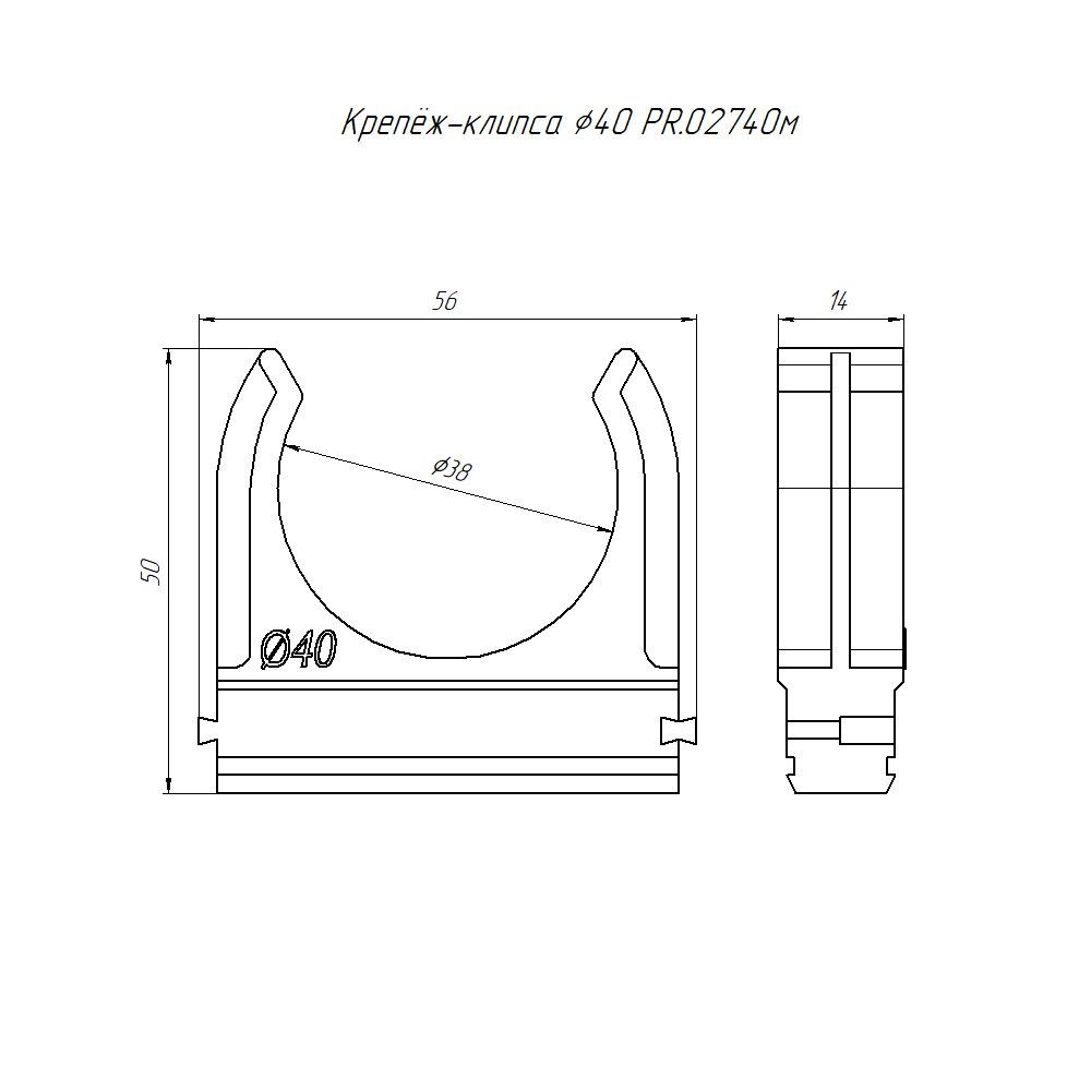 PR.02740м крепеж-клипса для труб Полистирол d40 мм (10шт/300шт уп/кор) Промрукав; пластик; диаметр 40 мм; УХЛ2; монтаж -5...50 °C; эксплуатация -60...60 °C; 0,01113 кг/шт.