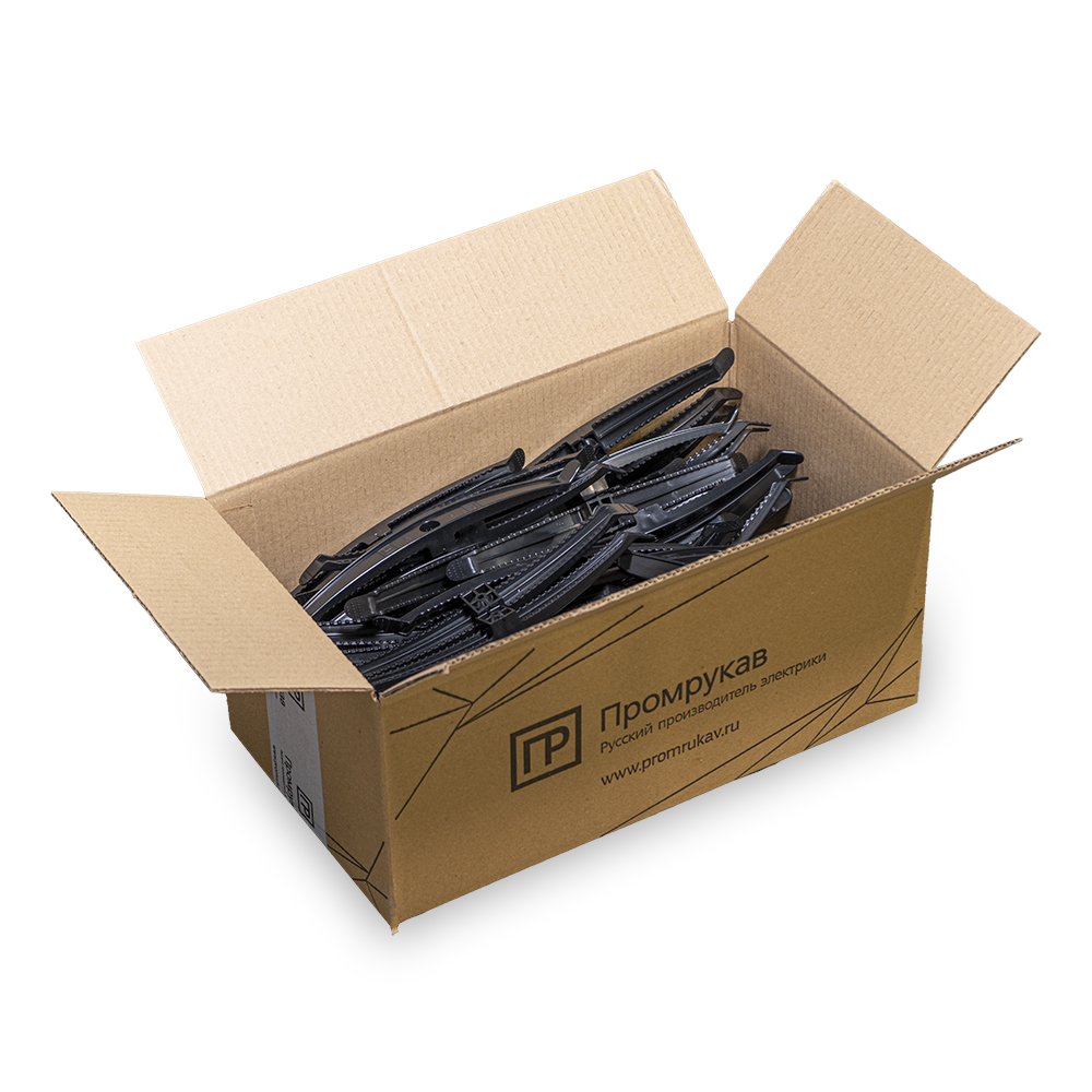 PR13.0488 держатель кабеля двусторонний для прямого монтажа в гофроящике черный (100 шт/кор) Промрукав; пластик; УХЛ2; RAL 9005; -60..+60°C; 0,0195 кг.