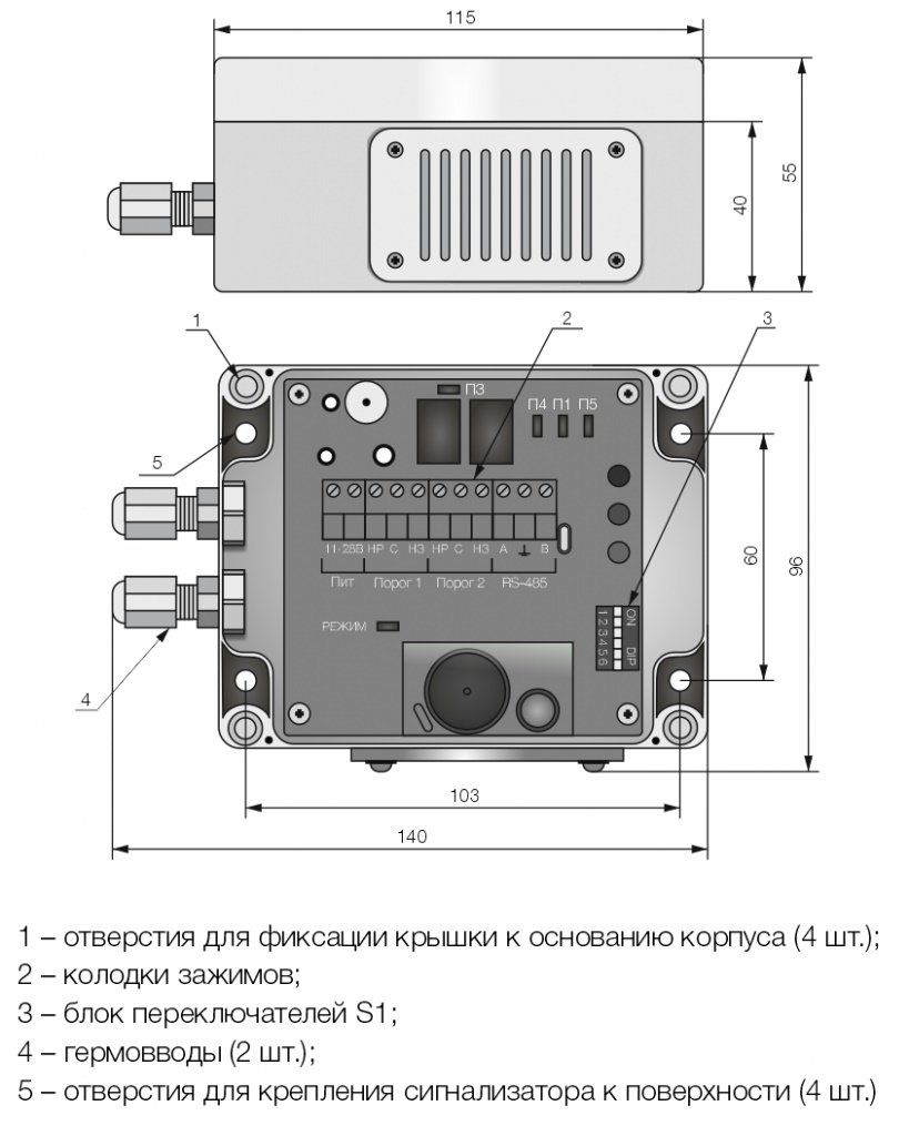 Габаритные размеры (ДхШхВ), мм: 140х96х55