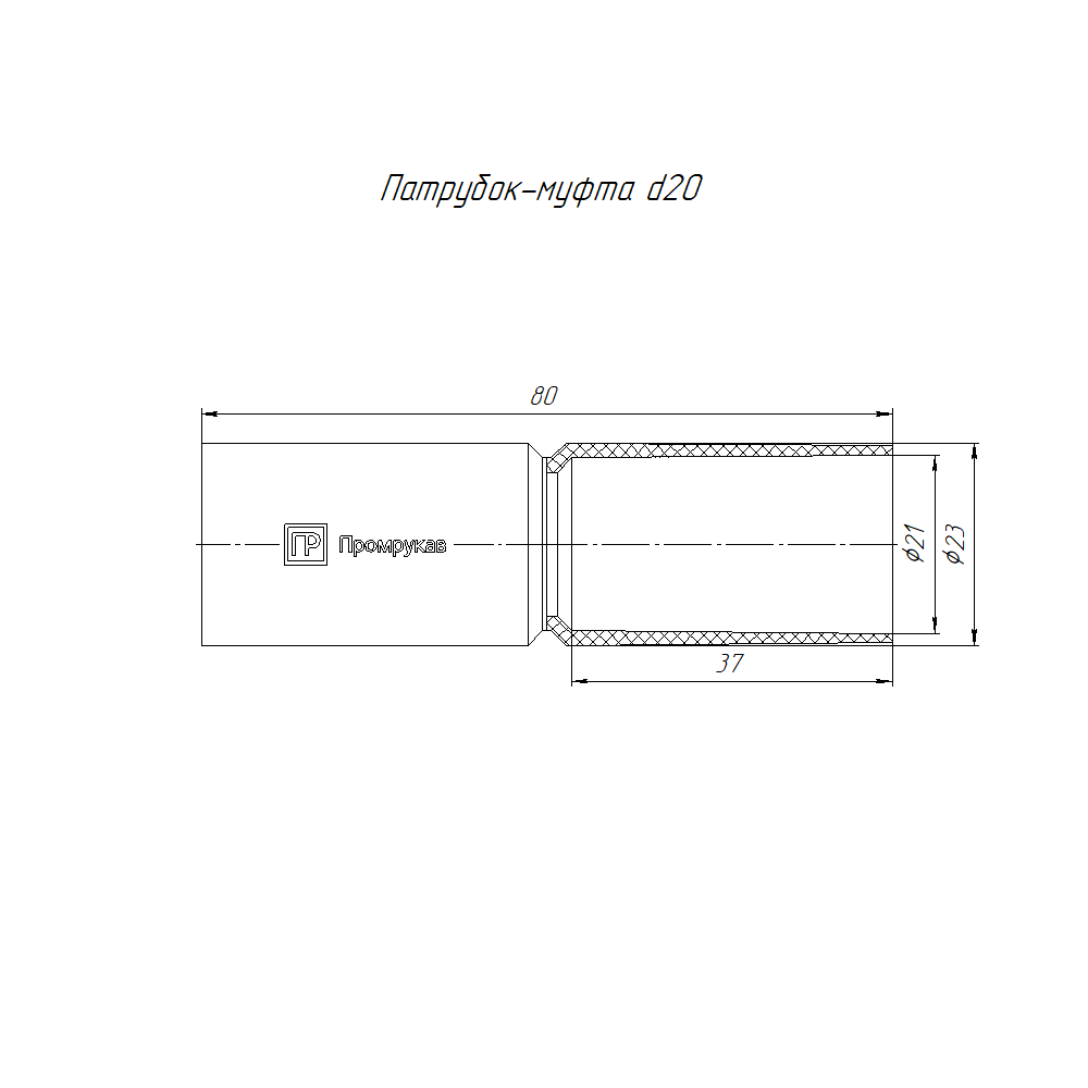PR.01720м патрубок-муфта д20 (10шт/800шт уп/кор) Промрукав; УХЛ2; АБС-пластик; IP43; -60...60°C; 0,0101 кг.