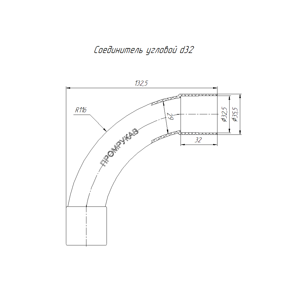 PR13.0359 соединитель угловой d32 мм безгалогенный (HF) атмосферостойкий серый (15шт/135шт уп/кор) Промрукав; У1; АБС-пластик; IP43; -60...60°C; 0,04079 кг.
