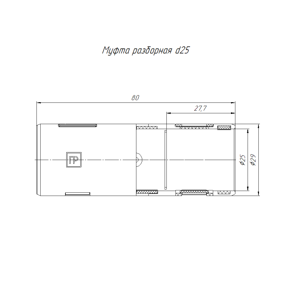 PR13.0431 муфта разборная d25 мм атмосферостойкая серая (5шт/300шт уп/кор) Промрукав; У1; АБС-пластик; IP40; -60...60°C; RAL 7035; 0,0156 кг.
