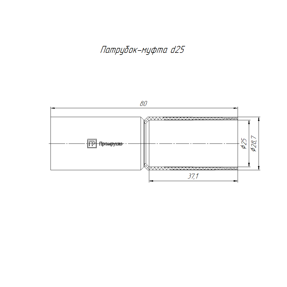 PR13.02449 патрубок-муфта белая d25 мм (5шт/300шт уп/кор) Промрукав; УХЛ2; АБС-пластик; IP43; -60...60°C; RAL 9003; 0,01297 кг.