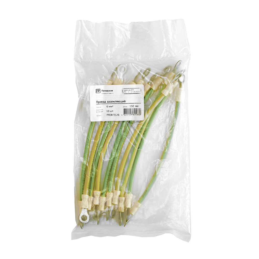 PR08.3126 Провод заземляющий сечением 6 мм2 длиной 150 мм (10 шт/уп) Промрукав; медь; -50...50°C; 0,01435 кг.