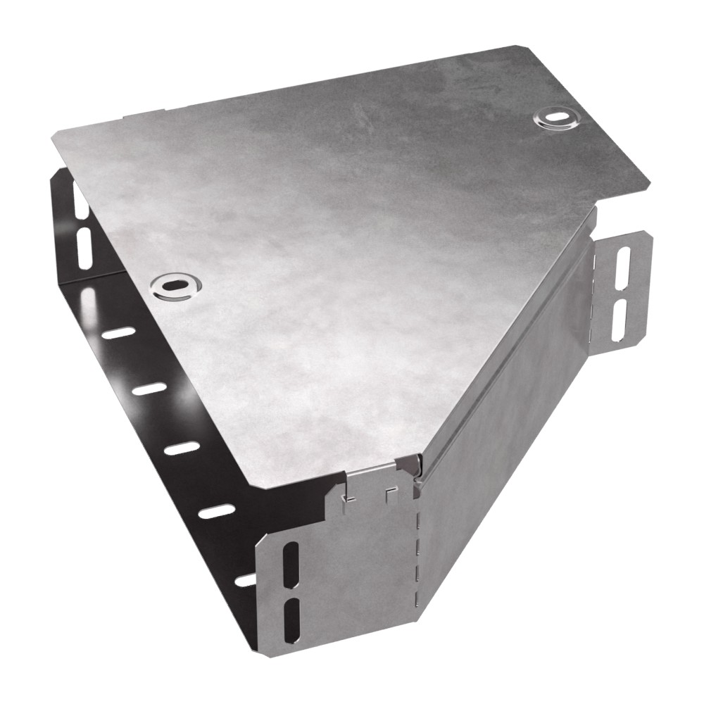 Аксессуары изготовленные из стали с защитным покрытием по методу Сендзимира – это изделия, на которых защитное цинковое покрытие было нанесено на листовую сталь перед изготовлением. Толщина защитного покрытия варьируется от 10 до 22мкм. Климатическое исполнение изделий УХЛ2, что предусматривают эксплуатацию в помещении и под навесом, при температуре эксплуатации от -80 до +150°С. Переходник левый предназначен для перехода с одной ширины лотка на другую. В комплект входит крышка.