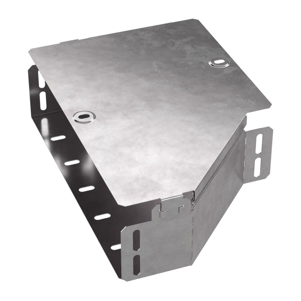 Аксессуары изготовленные из стали с защитным покрытием по методу Сендзимира – это изделия, на которых защитное цинковое покрытие было нанесено на листовую сталь перед изготовлением. Толщина защитного покрытия варьируется от 10 до 22мкм. Климатическое исполнение изделий УХЛ2, что предусматривают эксплуатацию в помещении и под навесом, при температуре эксплуатации от -80 до +150°С. Переходник левый предназначен для перехода с одной ширины лотка на другую. В комплект входит крышка.