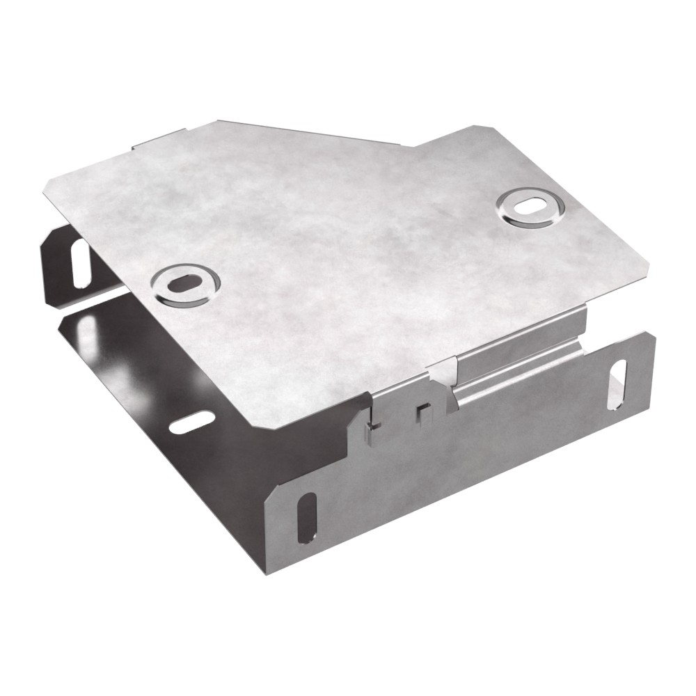 Аксессуары изготовленные из стали с защитным покрытием по методу Сендзимира – это изделия, на которых защитное цинковое покрытие было нанесено на листовую сталь перед изготовлением. Толщина защитного покрытия варьируется от 10 до 22мкм. Климатическое исполнение изделий УХЛ2, что предусматривают эксплуатацию в помещении и под навесом, при температуре эксплуатации от -80 до +150°С. Переходник правый предназначен для перехода с одной ширины лотка на другую. В комплект входит крышка.