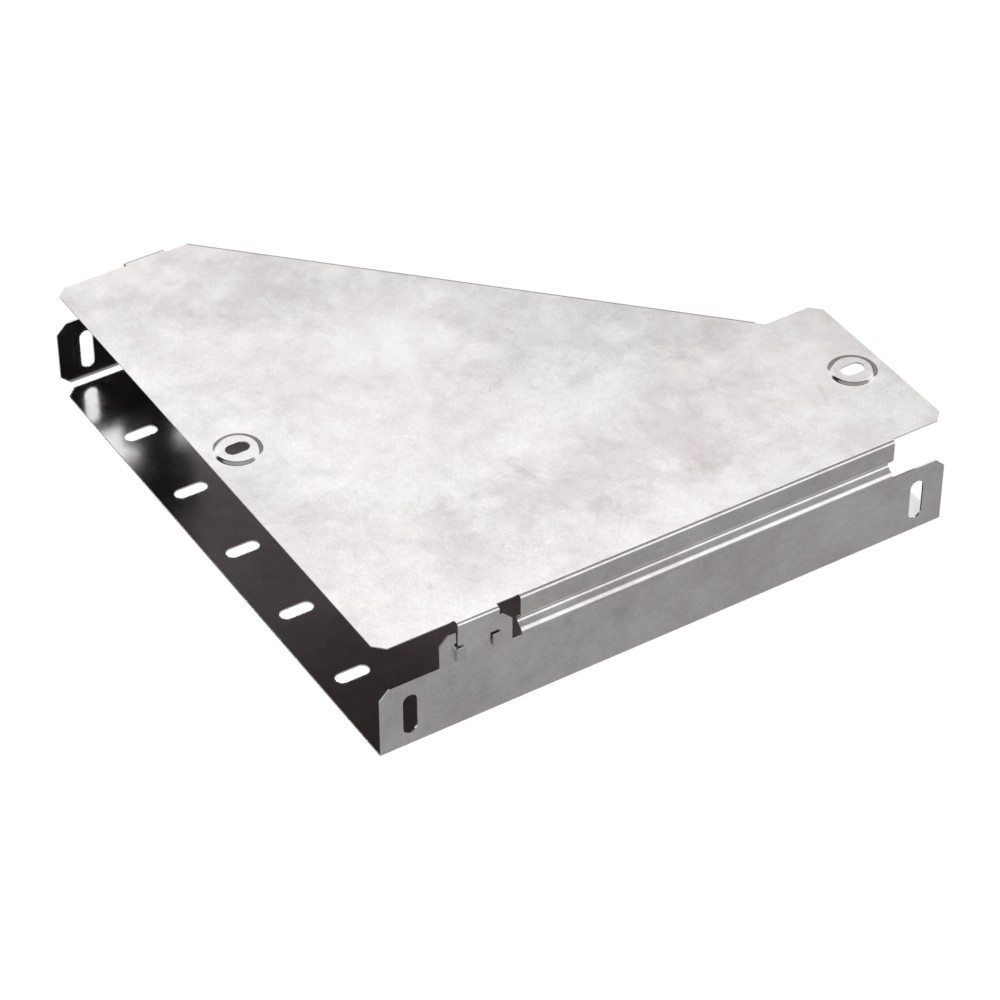 Аксессуары изготовленные из стали с защитным покрытием по методу Сендзимира – это изделия, на которых защитное цинковое покрытие было нанесено на листовую сталь перед изготовлением. Толщина защитного покрытия варьируется от 10 до 22мкм. Климатическое исполнение изделий УХЛ2, что предусматривают эксплуатацию в помещении и под навесом, при температуре эксплуатации от -80 до +150°С. Переходник правый предназначен для перехода с одной ширины лотка на другую. В комплект входит крышка.