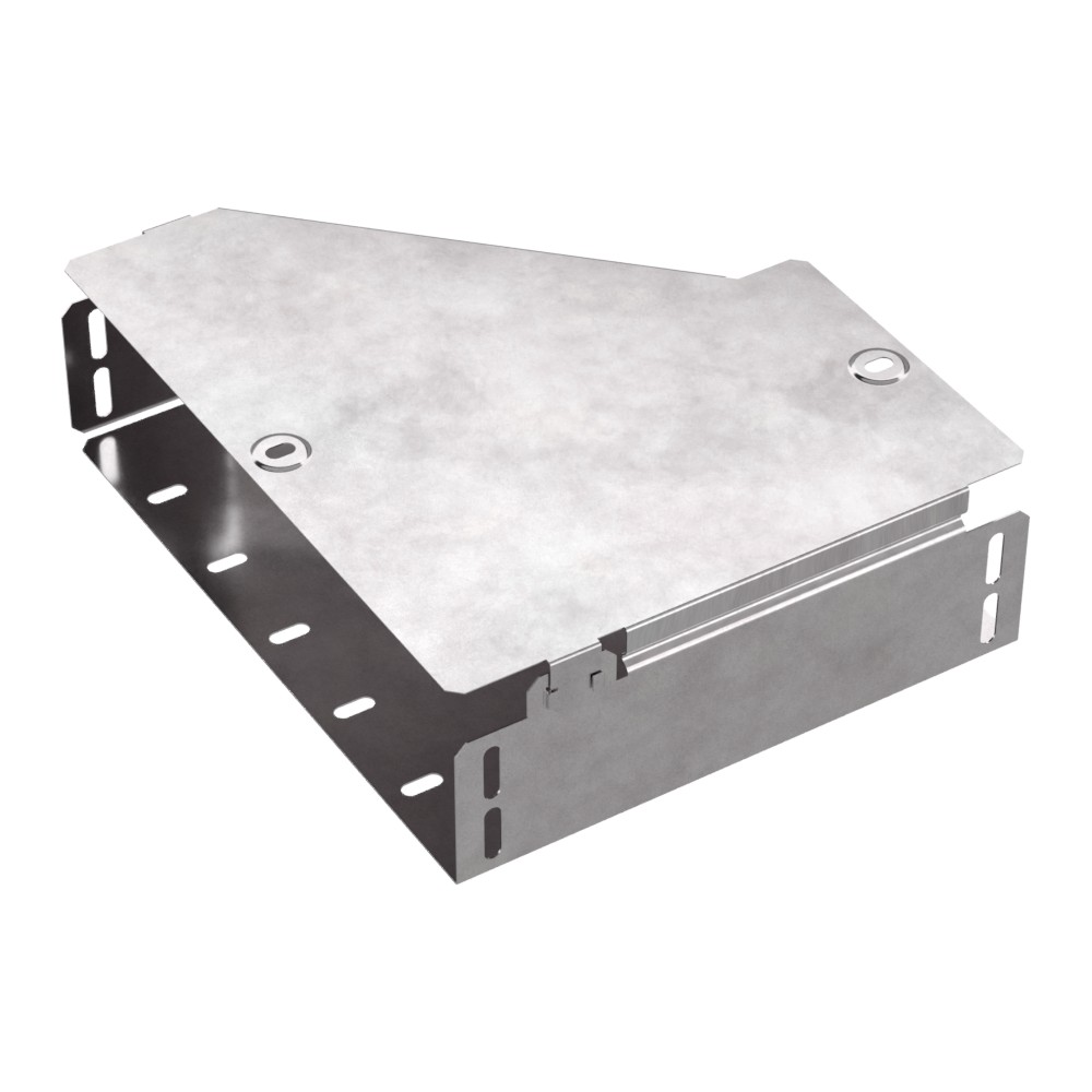 Аксессуары изготовленные из стали с защитным покрытием по методу Сендзимира – это изделия, на которых защитное цинковое покрытие было нанесено на листовую сталь перед изготовлением. Толщина защитного покрытия варьируется от 10 до 22мкм. Климатическое исполнение изделий УХЛ2, что предусматривают эксплуатацию в помещении и под навесом, при температуре эксплуатации от -80 до +150°С. Переходник правый предназначен для перехода с одной ширины лотка на другую. В комплект входит крышка.