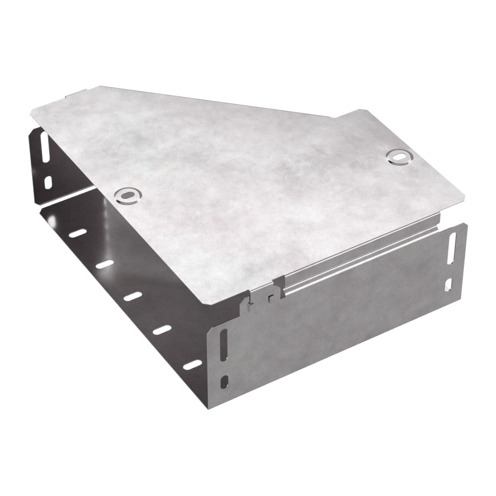 Аксессуары изготовленные из стали с защитным покрытием по методу Сендзимира – это изделия, на которых защитное цинковое покрытие было нанесено на листовую сталь перед изготовлением. Толщина защитного покрытия варьируется от 10 до 22мкм. Климатическое исполнение изделий УХЛ2, что предусматривают эксплуатацию в помещении и под навесом, при температуре эксплуатации от -80 до +150°С. Переходник правый предназначен для перехода с одной ширины лотка на другую. В комплект входит крышка.