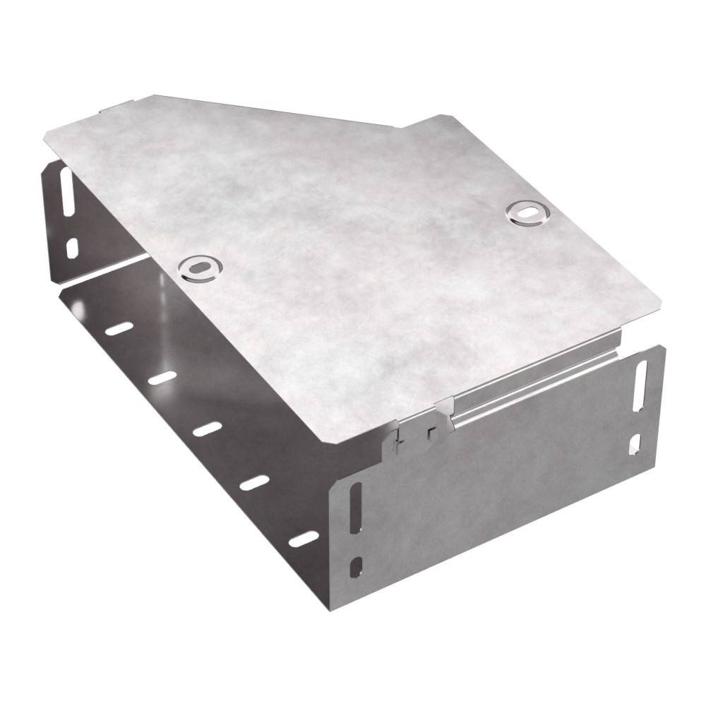Аксессуары изготовленные из стали с защитным покрытием по методу Сендзимира – это изделия, на которых защитное цинковое покрытие было нанесено на листовую сталь перед изготовлением. Толщина защитного покрытия варьируется от 10 до 22мкм. Климатическое исполнение изделий УХЛ2, что предусматривают эксплуатацию в помещении и под навесом, при температуре эксплуатации от -80 до +150°С. Переходник правый предназначен для перехода с одной ширины лотка на другую. В комплект входит крышка.