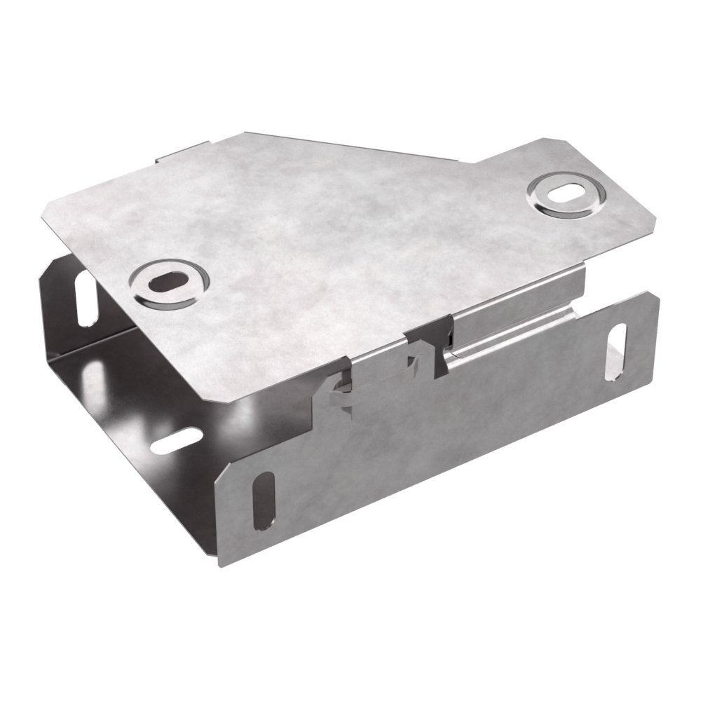 Аксессуары изготовленные из стали с защитным покрытием по методу Сендзимира – это изделия, на которых защитное цинковое покрытие было нанесено на листовую сталь перед изготовлением. Толщина защитного покрытия варьируется от 10 до 22мкм. Климатическое исполнение изделий УХЛ2, что предусматривают эксплуатацию в помещении и под навесом, при температуре эксплуатации от -80 до +150°С. Переходник правый предназначен для перехода с одной ширины лотка на другую. В комплект входит крышка.