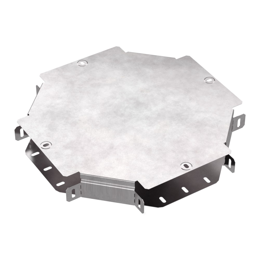 Аксессуары изготовленные из стали с защитным покрытием по методу Сендзимира – это изделия, на которых защитное цинковое покрытие было нанесено на листовую сталь перед изготовлением. Толщина защитного покрытия варьируется от 10 до 22мкм. Климатическое исполнение изделий УХЛ2, что предусматривают эксплуатацию в помещении и под навесом, при температуре эксплуатации от -80 до +150°С. Ответвитель X-образный предназначен для разветвления кабельных трасс в горизонтальном направлении, для перфорированных и глухих лотков. В комплект входит крышка.