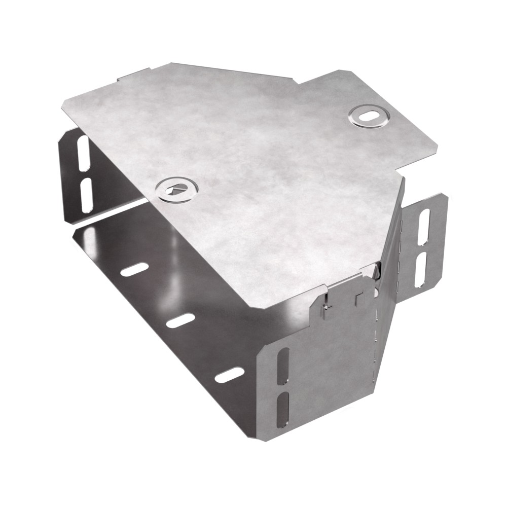 Аксессуары изготовленные из стали с защитным покрытием по методу Сендзимира – это изделия, на которых защитное цинковое покрытие было нанесено на листовую сталь перед изготовлением. Толщина защитного покрытия варьируется от 10 до 22мкм. Климатическое исполнение изделий УХЛ2, что предусматривают эксплуатацию в помещении и под навесом, при температуре эксплуатации от -80 до +150°С. Переходник симметричный предназначен для перехода с одной ширины лотка на другую. В комплект входит крышка.