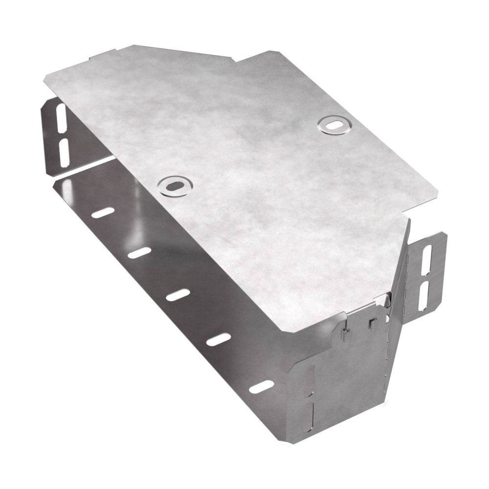 Аксессуары изготовленные из стали с защитным покрытием по методу Сендзимира – это изделия, на которых защитное цинковое покрытие было нанесено на листовую сталь перед изготовлением. Толщина защитного покрытия варьируется от 10 до 22мкм. Климатическое исполнение изделий УХЛ2, что предусматривают эксплуатацию в помещении и под навесом, при температуре эксплуатации от -80 до +150°С. Переходник симметричный предназначен для перехода с одной ширины лотка на другую. В комплект входит крышка.