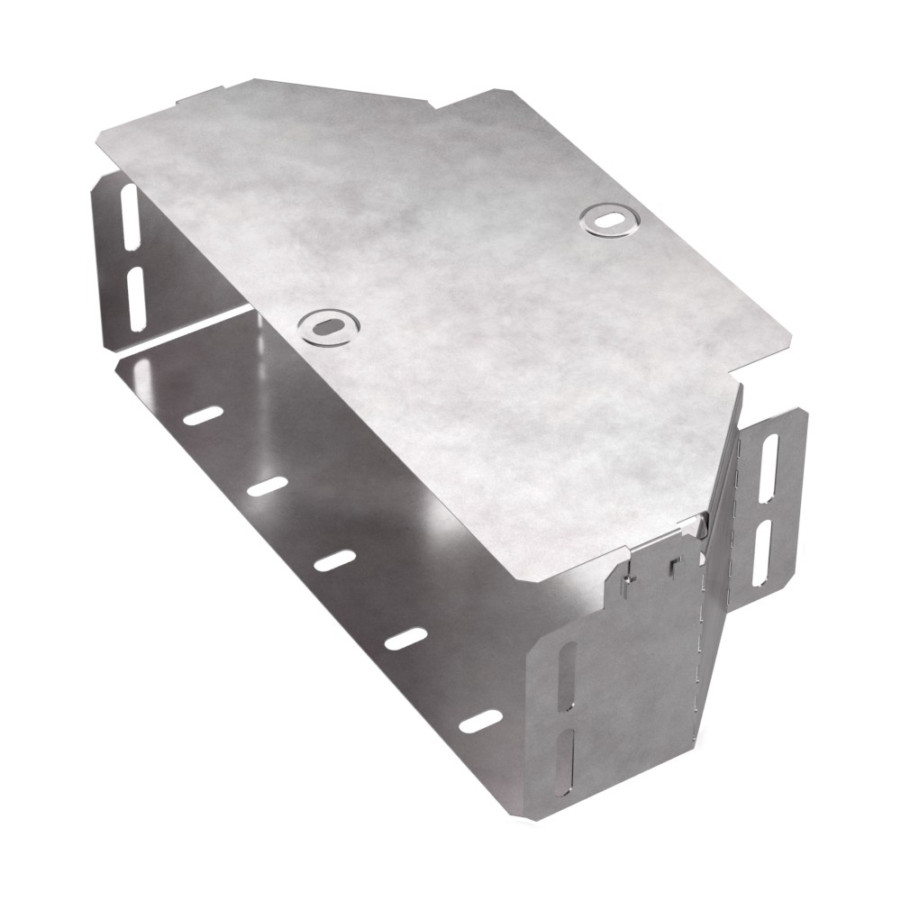 Аксессуары изготовленные из стали с защитным покрытием по методу Сендзимира – это изделия, на которых защитное цинковое покрытие было нанесено на листовую сталь перед изготовлением. Толщина защитного покрытия варьируется от 10 до 22мкм. Климатическое исполнение изделий УХЛ2, что предусматривают эксплуатацию в помещении и под навесом, при температуре эксплуатации от -80 до +150°С. Переходник симметричный предназначен для перехода с одной ширины лотка на другую. В комплект входит крышка.