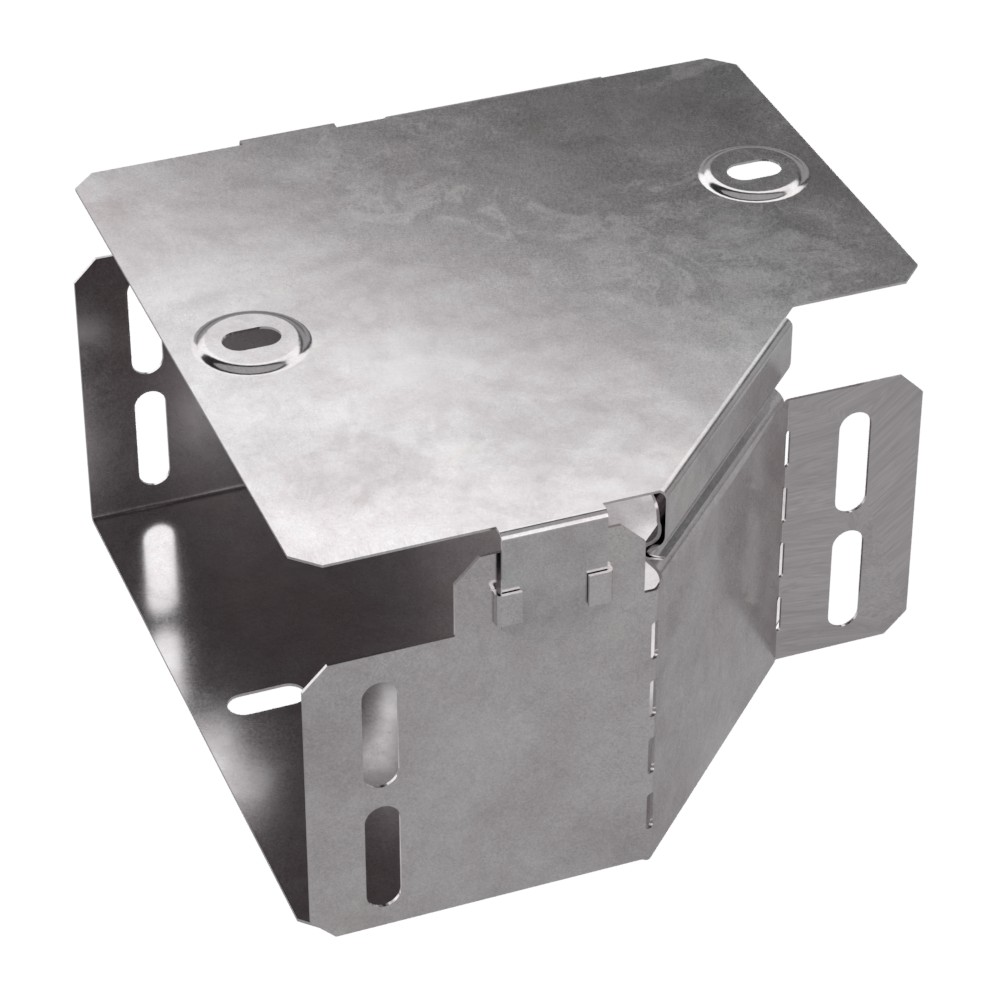 Аксессуары изготовленные из стали с защитным покрытием по методу Сендзимира – это изделия, на которых защитное цинковое покрытие было нанесено на листовую сталь перед изготовлением. Толщина защитного покрытия варьируется от 10 до 22мкм. Климатическое исполнение изделий УХЛ2, что предусматривают эксплуатацию в помещении и под навесом, при температуре эксплуатации от -80 до +150°С. Переходник левый предназначен для перехода с одной ширины лотка на другую. В комплект входит крышка.