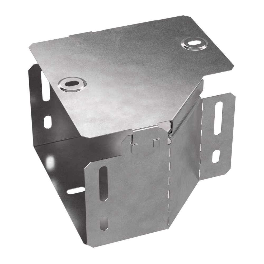 Аксессуары изготовленные из стали с защитным покрытием по методу Сендзимира – это изделия, на которых защитное цинковое покрытие было нанесено на листовую сталь перед изготовлением. Толщина защитного покрытия варьируется от 10 до 22мкм. Климатическое исполнение изделий УХЛ2, что предусматривают эксплуатацию в помещении и под навесом, при температуре эксплуатации от -80 до +150°С. Переходник левый предназначен для перехода с одной ширины лотка на другую. В комплект входит крышка.