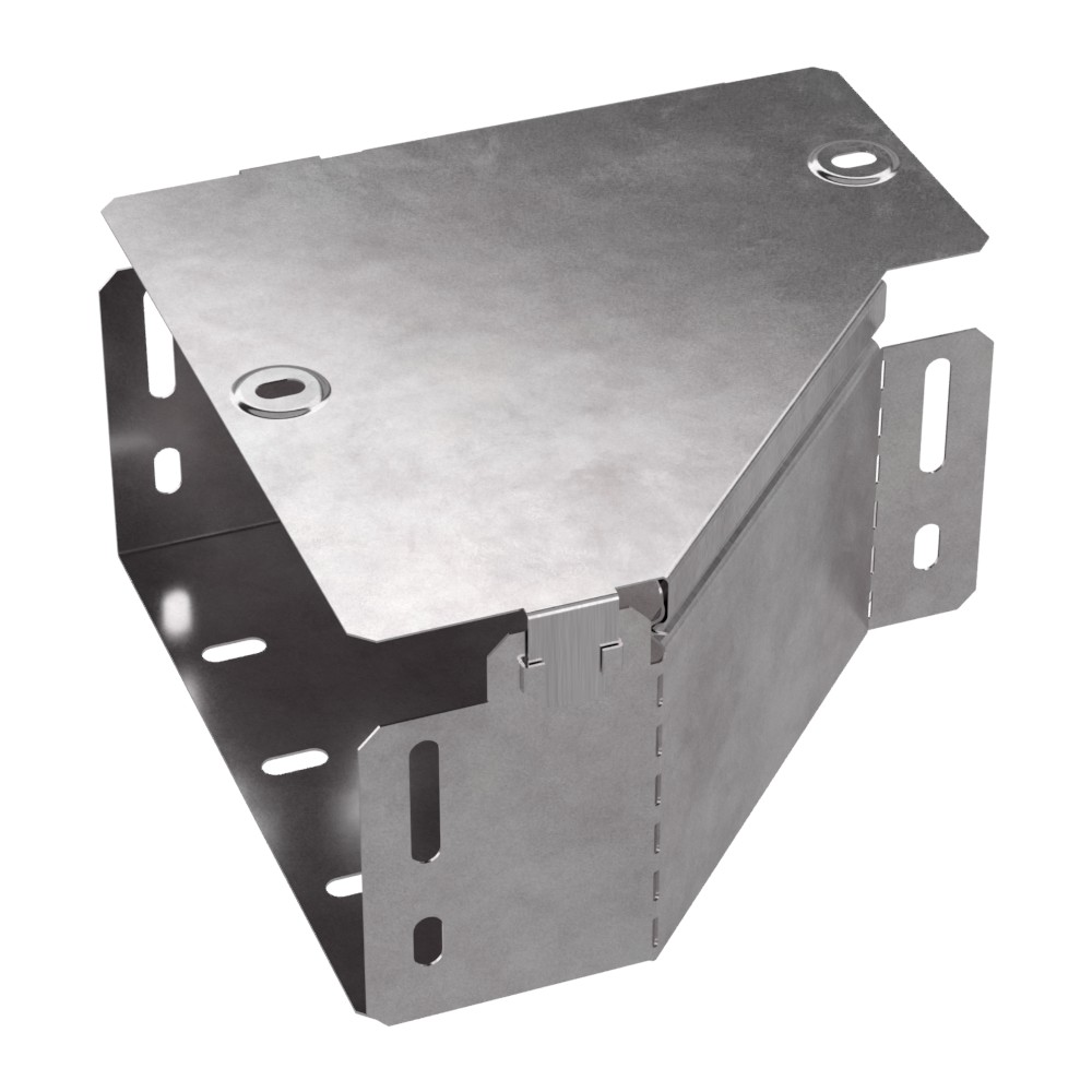 Аксессуары изготовленные из стали с защитным покрытием по методу Сендзимира – это изделия, на которых защитное цинковое покрытие было нанесено на листовую сталь перед изготовлением. Толщина защитного покрытия варьируется от 10 до 22мкм. Климатическое исполнение изделий УХЛ2, что предусматривают эксплуатацию в помещении и под навесом, при температуре эксплуатации от -80 до +150°С. Переходник левый предназначен для перехода с одной ширины лотка на другую. В комплект входит крышка.