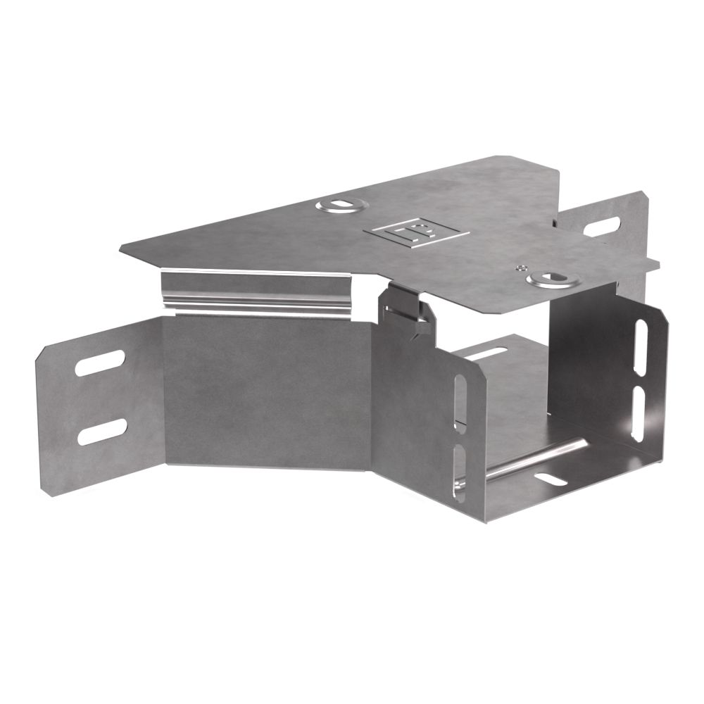 Аксессуары изготовленные из стали с защитным покрытием по методу Сендзимира – это изделия, на которых защитное цинковое покрытие было нанесено на листовую сталь перед изготовлением. Толщина защитного покрытия варьируется от 10 до 22мкм. Климатическое исполнение изделий УХЛ2, что предусматривают эксплуатацию в помещении и под навесом, при температуре эксплуатации от -80 до +150°С. Обеспечивает горизонтальное ответвление кабеленесущий линии, состоящей из лотков металлических.