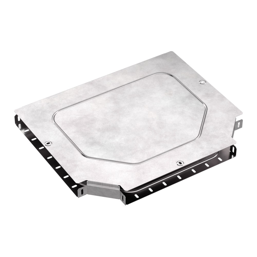Аксессуары изготовленные из стали с защитным покрытием по методу Сендзимира – это изделия, на которых защитное цинковое покрытие было нанесено на листовую сталь перед изготовлением. Толщина защитного покрытия варьируется от 10 до 22мкм. Климатическое исполнение изделий УХЛ2, что предусматривают эксплуатацию в помещении и под навесом, при температуре эксплуатации от -80 до +150°С. Т-образный ответвитель предназначен для разветвления кабельных трасс в горизонтальном направлении,для перфорированных и глухих лотков. В комплект входит крышка.