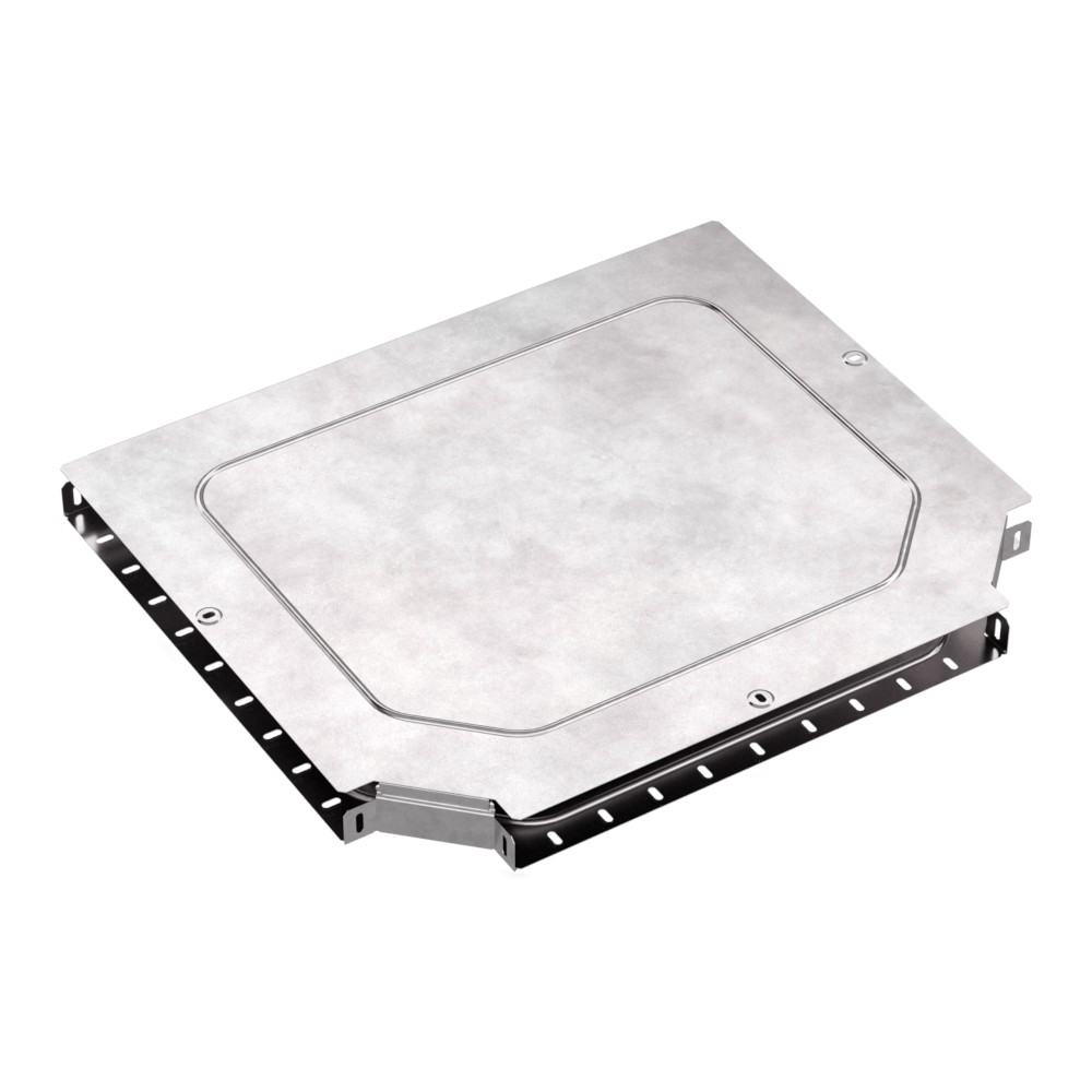 Аксессуары изготовленные из стали с защитным покрытием по методу Сендзимира – это изделия, на которых защитное цинковое покрытие было нанесено на листовую сталь перед изготовлением. Толщина защитного покрытия варьируется от 10 до 22мкм. Климатическое исполнение изделий УХЛ2, что предусматривают эксплуатацию в помещении и под навесом, при температуре эксплуатации от -80 до +150°С. Т-образный ответвитель предназначен для разветвления кабельных трасс в горизонтальном направлении,для перфорированных и глухих лотков. В комплект входит крышка.