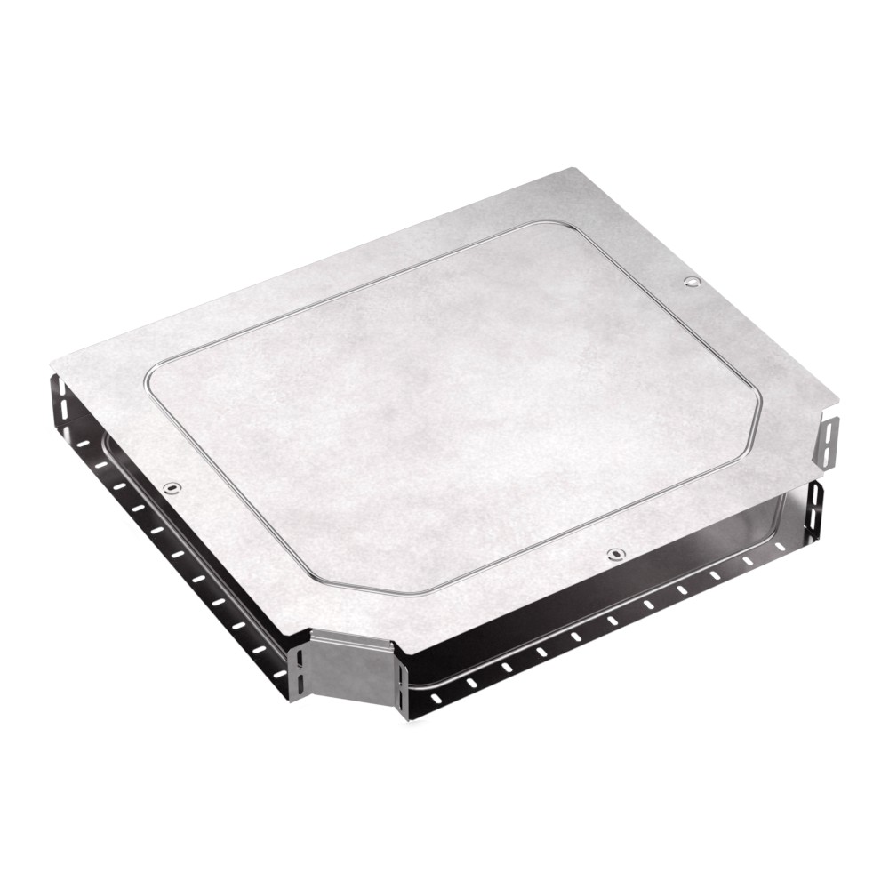 Аксессуары изготовленные из стали с защитным покрытием по методу Сендзимира – это изделия, на которых защитное цинковое покрытие было нанесено на листовую сталь перед изготовлением. Толщина защитного покрытия варьируется от 10 до 22мкм. Климатическое исполнение изделий УХЛ2, что предусматривают эксплуатацию в помещении и под навесом, при температуре эксплуатации от -80 до +150°С. Т-образный ответвитель предназначен для разветвления кабельных трасс в горизонтальном направлении,для перфорированных и глухих лотков. В комплект входит крышка.