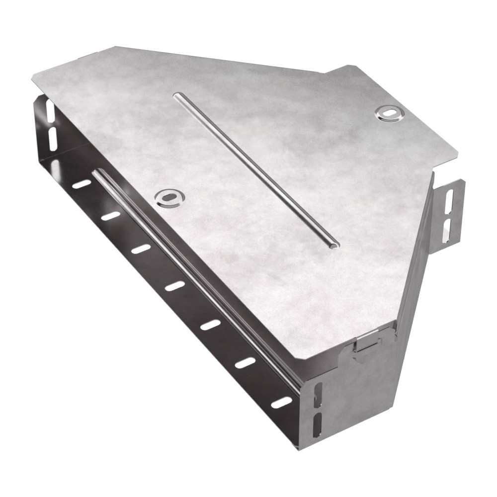Аксессуары изготовленные из стали с защитным покрытием по методу Сендзимира – это изделия, на которых защитное цинковое покрытие было нанесено на листовую сталь перед изготовлением. Толщина защитного покрытия варьируется от 10 до 22мкм. Климатическое исполнение изделий УХЛ2, что предусматривают эксплуатацию в помещении и под навесом, при температуре эксплуатации от -80 до +150°С. Переходник симметричный предназначен для перехода с одной ширины лотка на другую. В комплект входит крышка.
