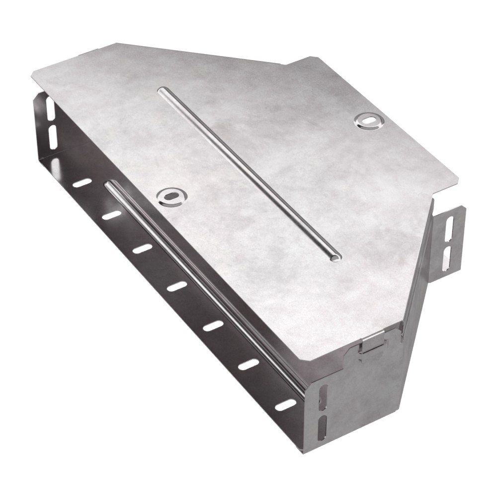 Аксессуары изготовленные из стали с защитным покрытием по методу Сендзимира – это изделия, на которых защитное цинковое покрытие было нанесено на листовую сталь перед изготовлением. Толщина защитного покрытия варьируется от 10 до 22мкм. Климатическое исполнение изделий УХЛ2, что предусматривают эксплуатацию в помещении и под навесом, при температуре эксплуатации от -80 до +150°С. Переходник симметричный предназначен для перехода с одной ширины лотка на другую. В комплект входит крышка.