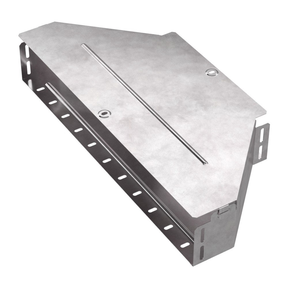 Аксессуары изготовленные из стали с защитным покрытием по методу Сендзимира – это изделия, на которых защитное цинковое покрытие было нанесено на листовую сталь перед изготовлением. Толщина защитного покрытия варьируется от 10 до 22мкм. Климатическое исполнение изделий УХЛ2, что предусматривают эксплуатацию в помещении и под навесом, при температуре эксплуатации от -80 до +150°С. Переходник симметричный предназначен для перехода с одной ширины лотка на другую. В комплект входит крышка.
