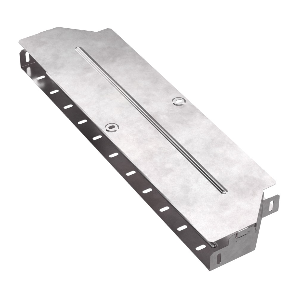 Аксессуары изготовленные из стали с защитным покрытием по методу Сендзимира – это изделия, на которых защитное цинковое покрытие было нанесено на листовую сталь перед изготовлением. Толщина защитного покрытия варьируется от 10 до 22мкм. Климатическое исполнение изделий УХЛ2, что предусматривают эксплуатацию в помещении и под навесом, при температуре эксплуатации от -80 до +150°С. Переходник симметричный предназначен для перехода с одной ширины лотка на другую. В комплект входит крышка.