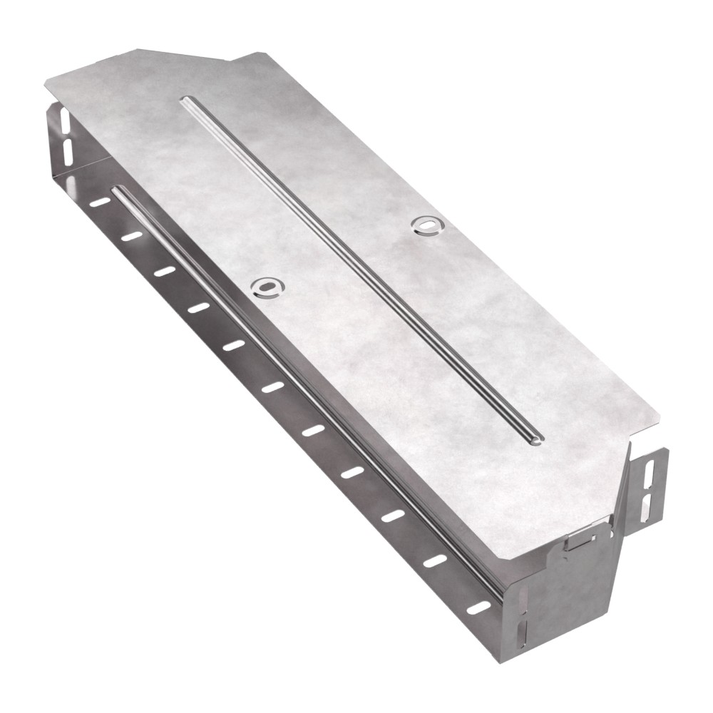 Аксессуары изготовленные из стали с защитным покрытием по методу Сендзимира – это изделия, на которых защитное цинковое покрытие было нанесено на листовую сталь перед изготовлением. Толщина защитного покрытия варьируется от 10 до 22мкм. Климатическое исполнение изделий УХЛ2, что предусматривают эксплуатацию в помещении и под навесом, при температуре эксплуатации от -80 до +150°С. Переходник симметричный предназначен для перехода с одной ширины лотка на другую. В комплект входит крышка.