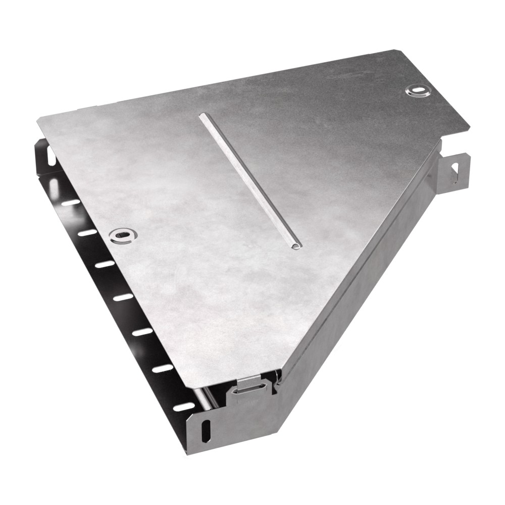 Аксессуары изготовленные из стали с защитным покрытием по методу Сендзимира – это изделия, на которых защитное цинковое покрытие было нанесено на листовую сталь перед изготовлением. Толщина защитного покрытия варьируется от 10 до 22мкм. Климатическое исполнение изделий УХЛ2, что предусматривают эксплуатацию в помещении и под навесом, при температуре эксплуатации от -80 до +150°С. Переходник левый предназначен для перехода с одной ширины лотка на другую. В комплект входит крышка.