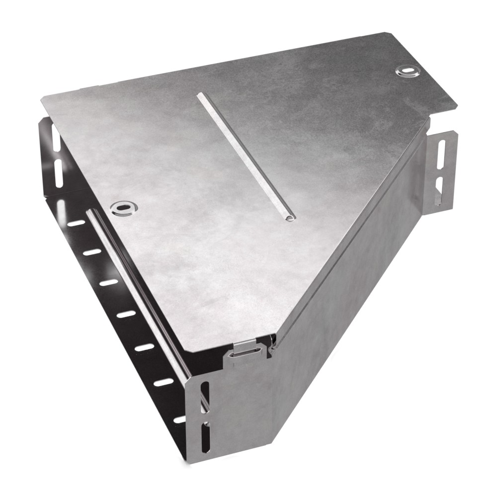 Аксессуары изготовленные из стали с защитным покрытием по методу Сендзимира – это изделия, на которых защитное цинковое покрытие было нанесено на листовую сталь перед изготовлением. Толщина защитного покрытия варьируется от 10 до 22мкм. Климатическое исполнение изделий УХЛ2, что предусматривают эксплуатацию в помещении и под навесом, при температуре эксплуатации от -80 до +150°С. Переходник левый предназначен для перехода с одной ширины лотка на другую. В комплект входит крышка.
