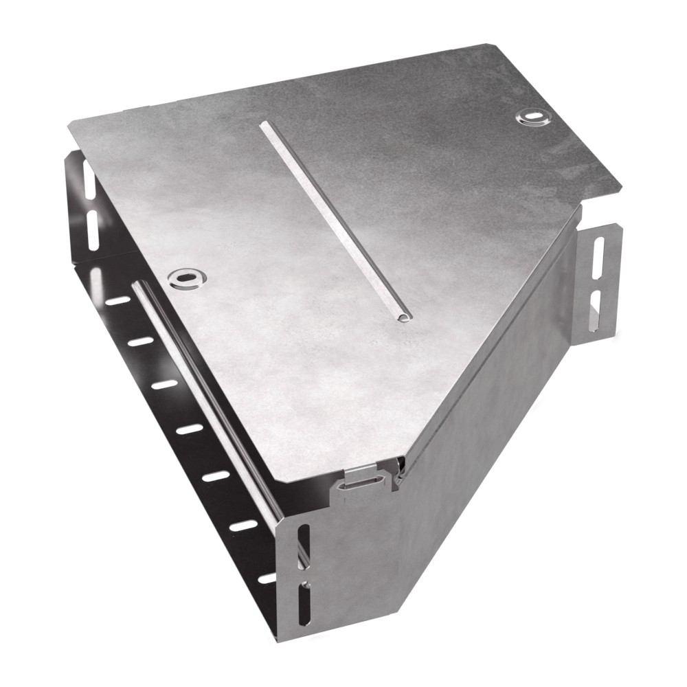 Аксессуары изготовленные из стали с защитным покрытием по методу Сендзимира – это изделия, на которых защитное цинковое покрытие было нанесено на листовую сталь перед изготовлением. Толщина защитного покрытия варьируется от 10 до 22мкм. Климатическое исполнение изделий УХЛ2, что предусматривают эксплуатацию в помещении и под навесом, при температуре эксплуатации от -80 до +150°С. Переходник левый предназначен для перехода с одной ширины лотка на другую. В комплект входит крышка.
