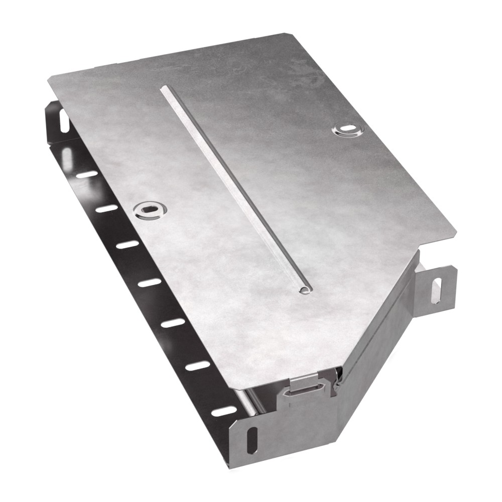 Аксессуары изготовленные из стали с защитным покрытием по методу Сендзимира – это изделия, на которых защитное цинковое покрытие было нанесено на листовую сталь перед изготовлением. Толщина защитного покрытия варьируется от 10 до 22мкм. Климатическое исполнение изделий УХЛ2, что предусматривают эксплуатацию в помещении и под навесом, при температуре эксплуатации от -80 до +150°С. Переходник левый предназначен для перехода с одной ширины лотка на другую. В комплект входит крышка.