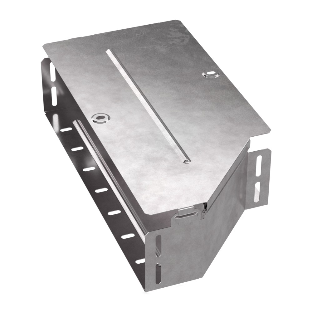 Аксессуары изготовленные из стали с защитным покрытием по методу Сендзимира – это изделия, на которых защитное цинковое покрытие было нанесено на листовую сталь перед изготовлением. Толщина защитного покрытия варьируется от 10 до 22мкм. Климатическое исполнение изделий УХЛ2, что предусматривают эксплуатацию в помещении и под навесом, при температуре эксплуатации от -80 до +150°С. Переходник левый предназначен для перехода с одной ширины лотка на другую. В комплект входит крышка.