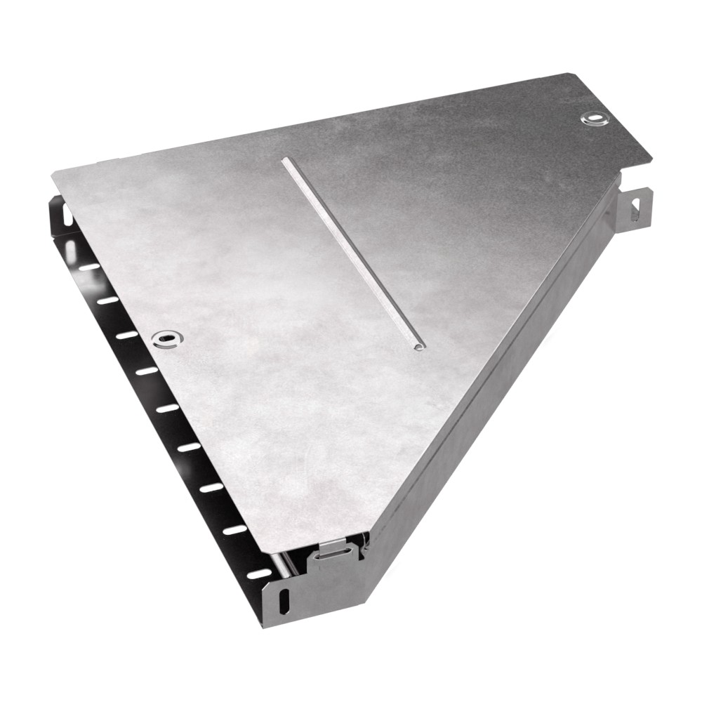 Аксессуары изготовленные из стали с защитным покрытием по методу Сендзимира – это изделия, на которых защитное цинковое покрытие было нанесено на листовую сталь перед изготовлением. Толщина защитного покрытия варьируется от 10 до 22мкм. Климатическое исполнение изделий УХЛ2, что предусматривают эксплуатацию в помещении и под навесом, при температуре эксплуатации от -80 до +150°С. Переходник левый предназначен для перехода с одной ширины лотка на другую. В комплект входит крышка.