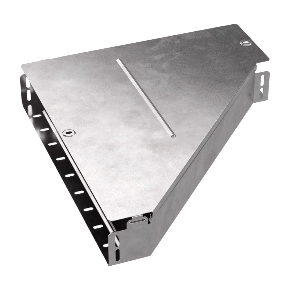 Аксессуары изготовленные из стали с защитным покрытием по методу Сендзимира – это изделия, на которых защитное цинковое покрытие было нанесено на листовую сталь перед изготовлением. Толщина защитного покрытия варьируется от 10 до 22мкм. Климатическое исполнение изделий УХЛ2, что предусматривают эксплуатацию в помещении и под навесом, при температуре эксплуатации от -80 до +150°С. Переходник левый предназначен для перехода с одной ширины лотка на другую. В комплект входит крышка.