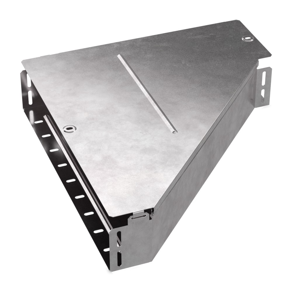 Аксессуары изготовленные из стали с защитным покрытием по методу Сендзимира – это изделия, на которых защитное цинковое покрытие было нанесено на листовую сталь перед изготовлением. Толщина защитного покрытия варьируется от 10 до 22мкм. Климатическое исполнение изделий УХЛ2, что предусматривают эксплуатацию в помещении и под навесом, при температуре эксплуатации от -80 до +150°С. Переходник левый предназначен для перехода с одной ширины лотка на другую. В комплект входит крышка.