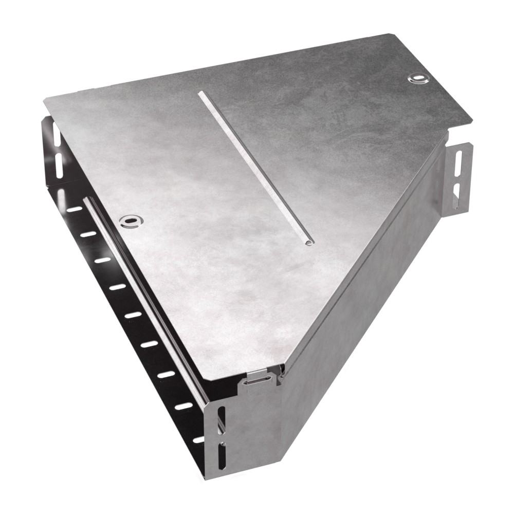 Аксессуары изготовленные из стали с защитным покрытием по методу Сендзимира – это изделия, на которых защитное цинковое покрытие было нанесено на листовую сталь перед изготовлением. Толщина защитного покрытия варьируется от 10 до 22мкм. Климатическое исполнение изделий УХЛ2, что предусматривают эксплуатацию в помещении и под навесом, при температуре эксплуатации от -80 до +150°С. Переходник левый предназначен для перехода с одной ширины лотка на другую. В комплект входит крышка.