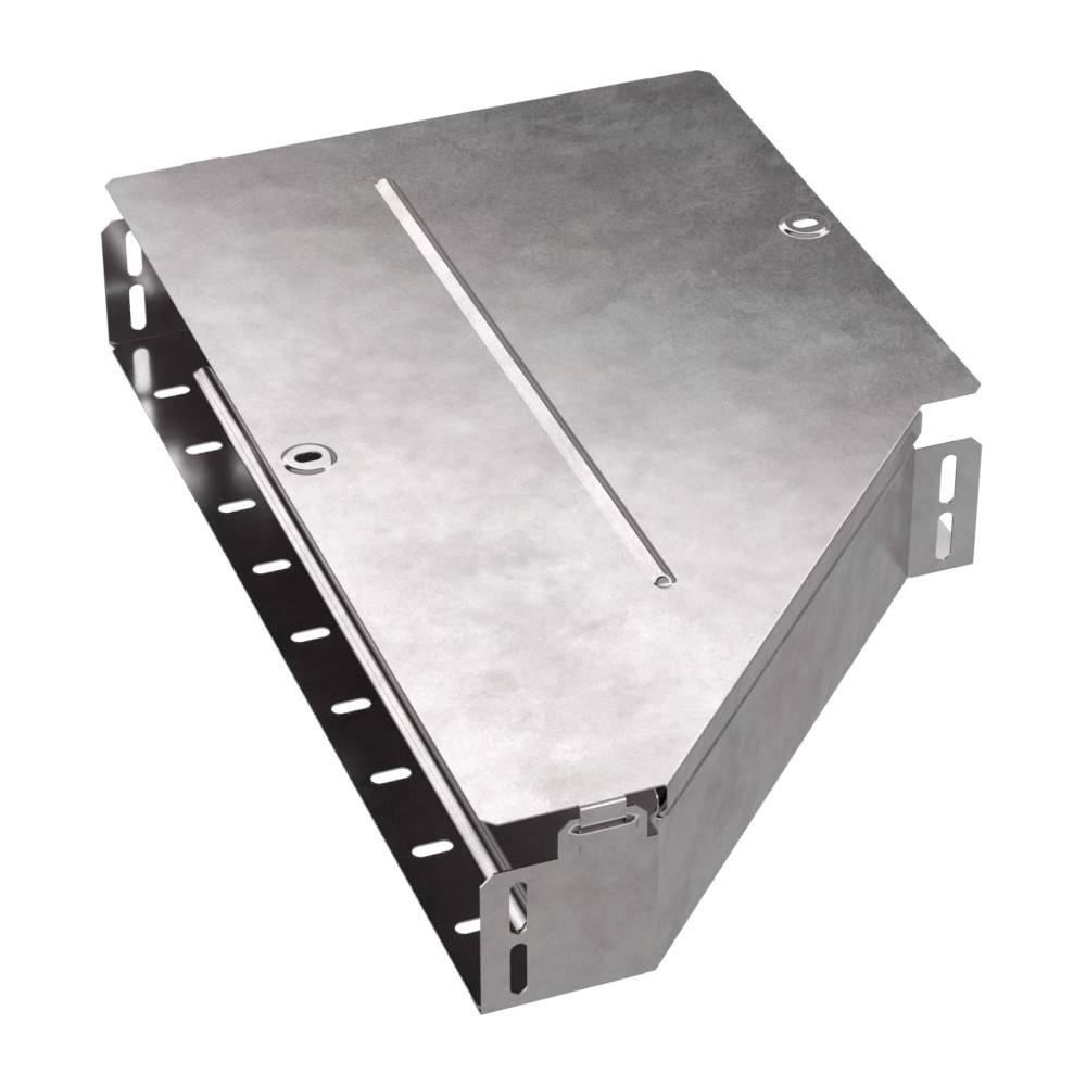 Аксессуары изготовленные из стали с защитным покрытием по методу Сендзимира – это изделия, на которых защитное цинковое покрытие было нанесено на листовую сталь перед изготовлением. Толщина защитного покрытия варьируется от 10 до 22мкм. Климатическое исполнение изделий УХЛ2, что предусматривают эксплуатацию в помещении и под навесом, при температуре эксплуатации от -80 до +150°С. Переходник левый предназначен для перехода с одной ширины лотка на другую. В комплект входит крышка.