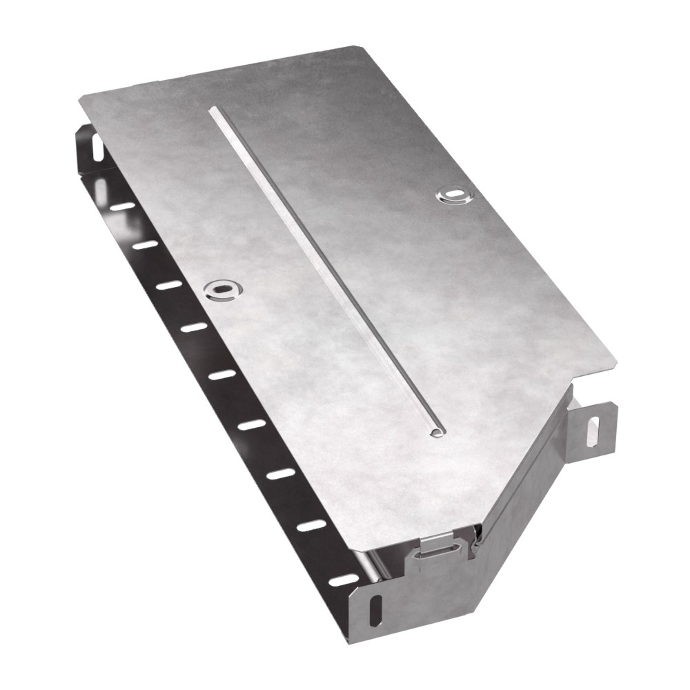 Аксессуары изготовленные из стали с защитным покрытием по методу Сендзимира – это изделия, на которых защитное цинковое покрытие было нанесено на листовую сталь перед изготовлением. Толщина защитного покрытия варьируется от 10 до 22мкм. Климатическое исполнение изделий УХЛ2, что предусматривают эксплуатацию в помещении и под навесом, при температуре эксплуатации от -80 до +150°С. Переходник левый предназначен для перехода с одной ширины лотка на другую. В комплект входит крышка.